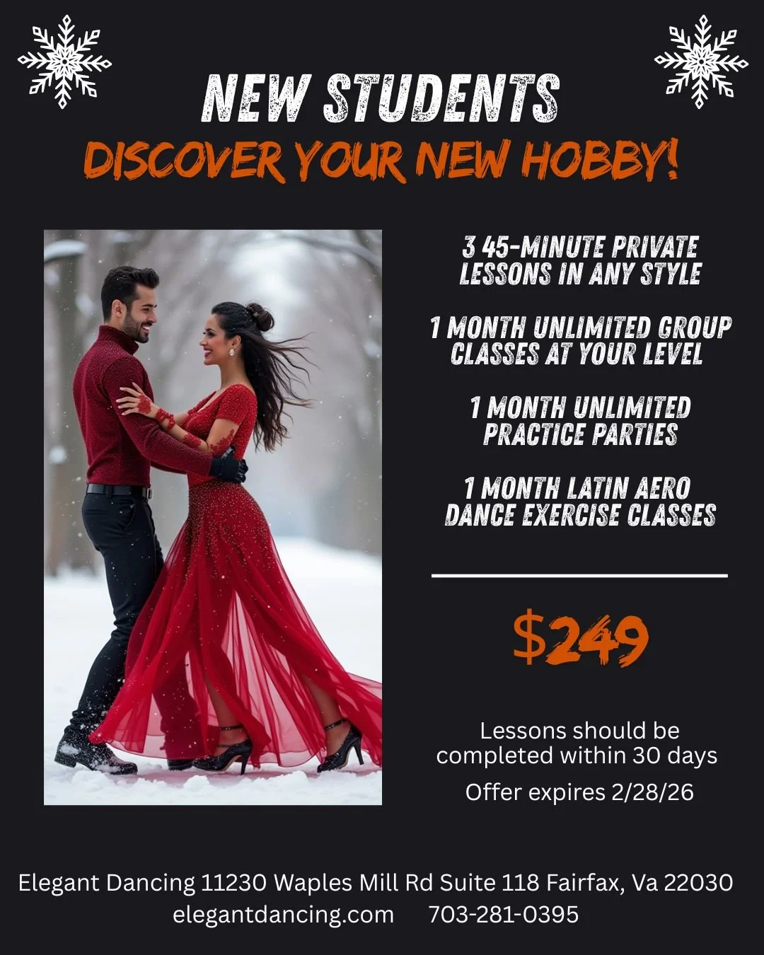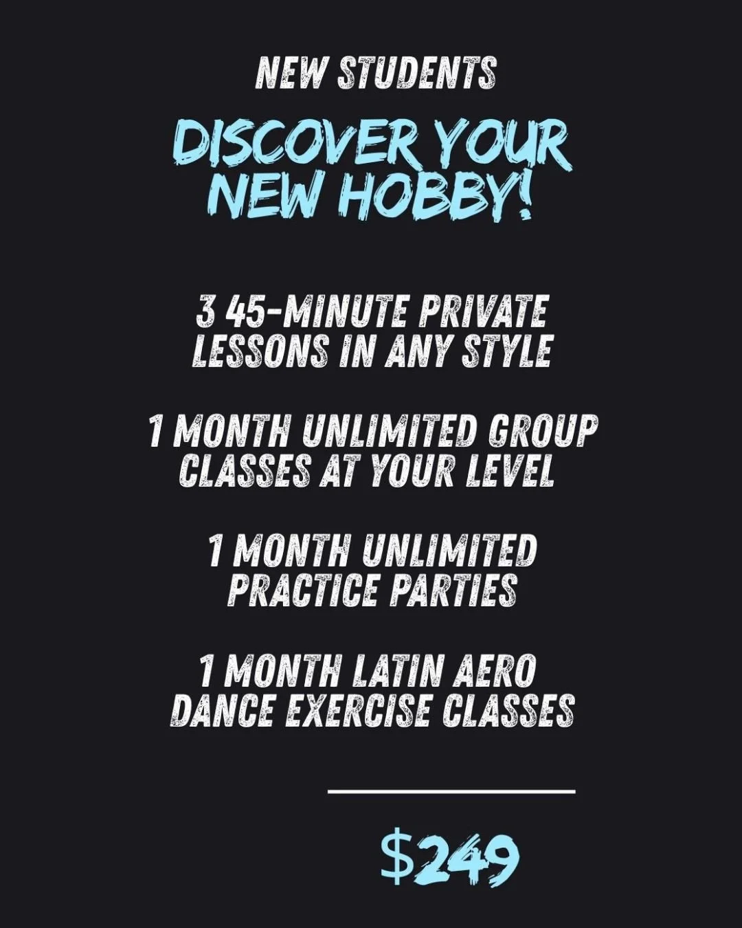 We have special packages for students new to our studio. Whether you have never set foot on a dance floor, or are new to our studio, we have something special for you!