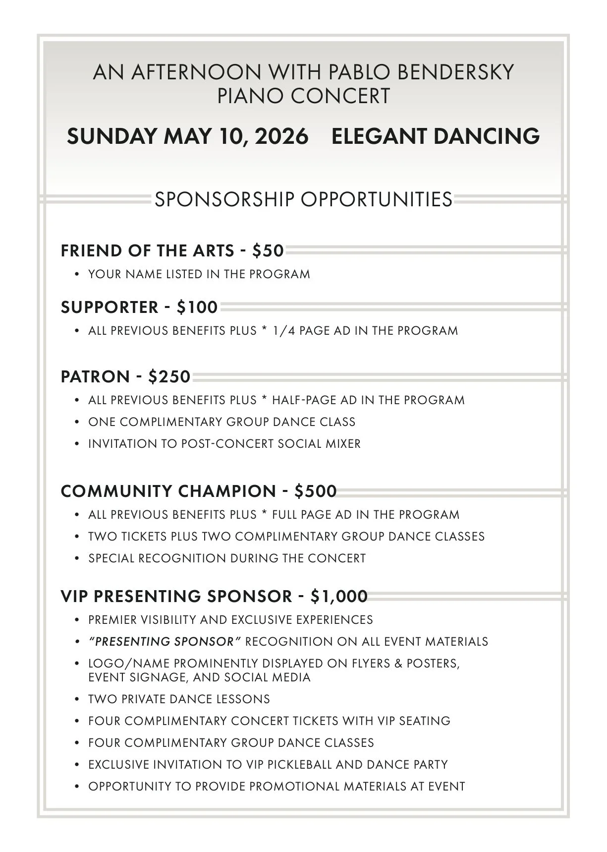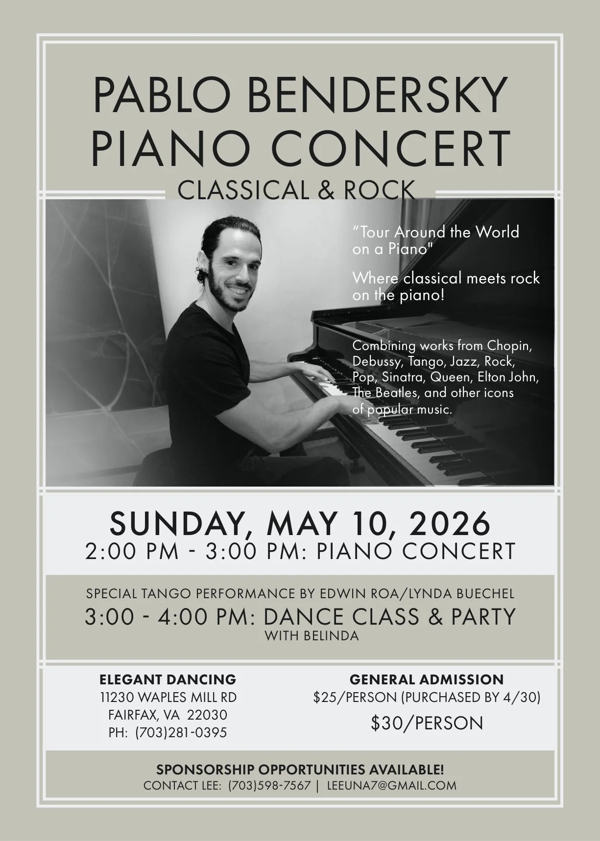 Sunday May 10 Piano Concert with Pablo Bendersky (Hosted by Una Lee)