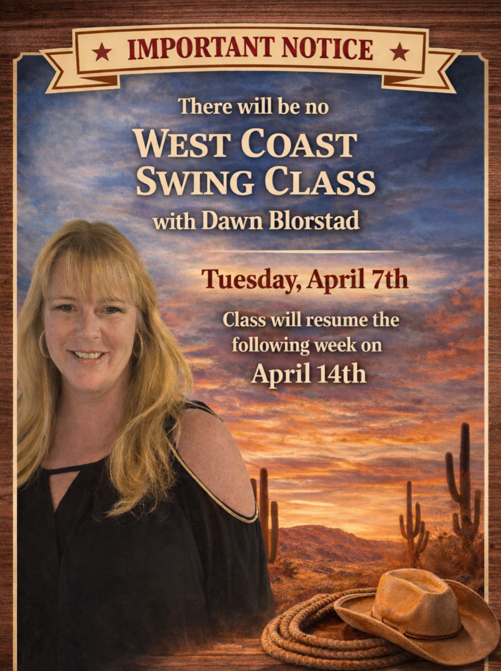 Tuesday April 7 No West Coast Swing with Dawn today