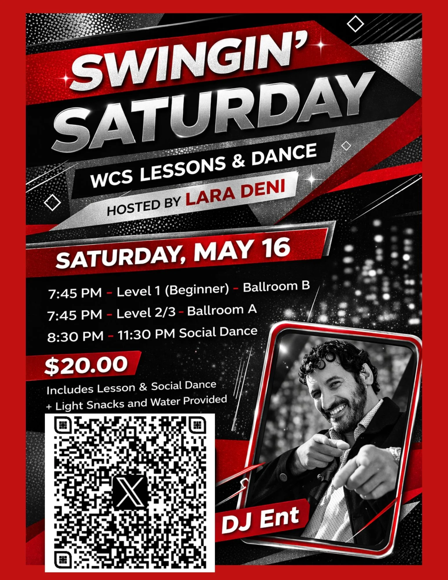 Saturday May 16 Lara Deni’s WCS Lessons & Social 7:45-11:30pm