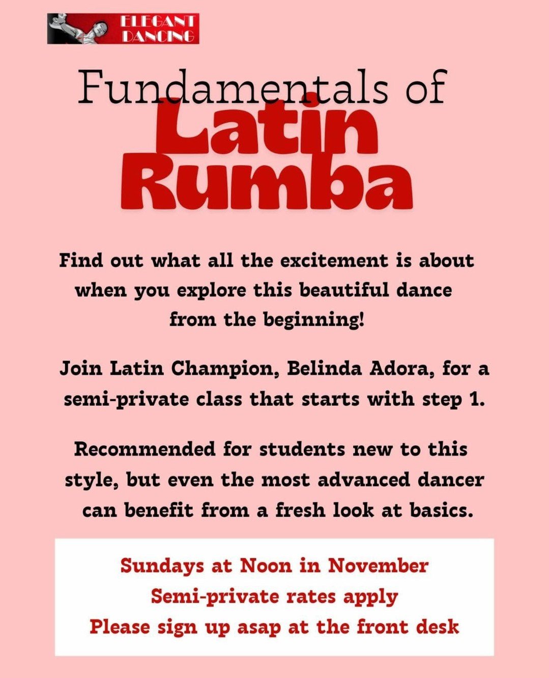 Belinda is thrilled to be teaching and coaching at Elegant Dancing. She is making a big contribution to the quality of Latin dancing in the DC area.